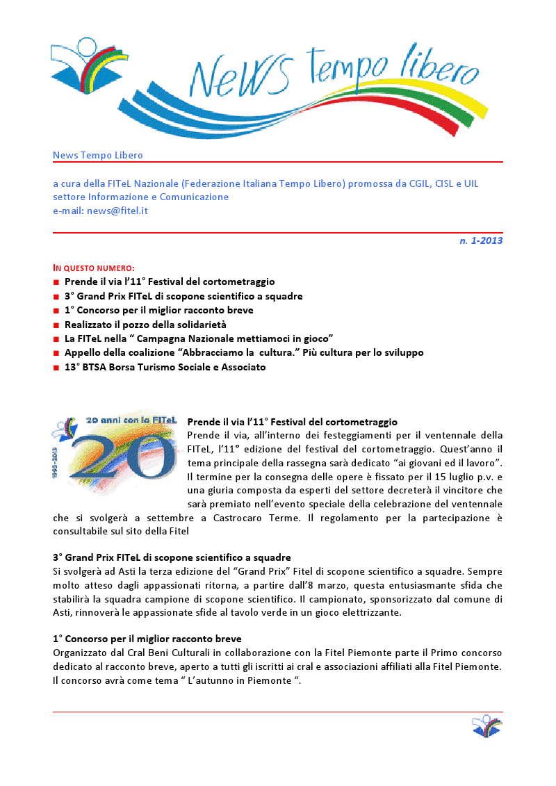 DALLA FITEL NAZIONALE: NEWS TEMPO LIBERO 1 - 2013