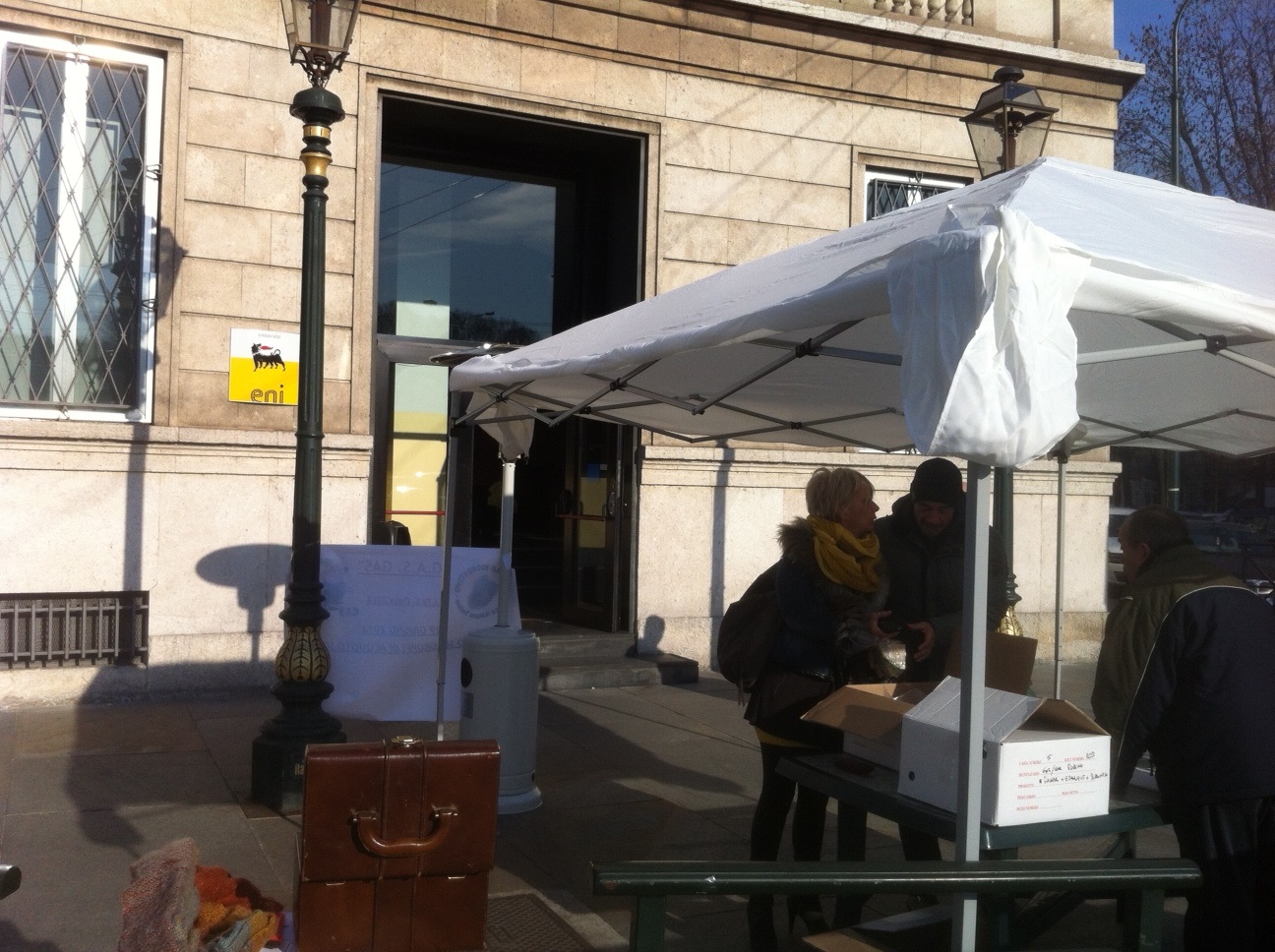 Neppure il freddo più pungente li ferma, figuratevi un NO dell'azienda ! Già, come vedete dalle foto il GAS GAS (Gruppo Acquisto Solidale del CRAL ITALGAS), visto che nessuna stanza era disponibile si sono attrezzati con un Gazebo. Ma, direte, come mai nelle foto si vede quasi sempre l'inossidabile Aldo Vay ? Beh, perchè è un Alpino e, nonostante il freddo...non so se mi spiego !